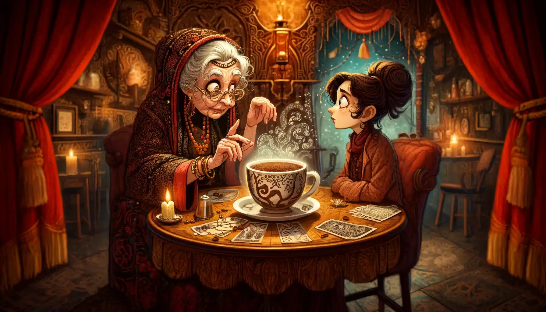 In the whimsical world of Turkish coffee fortune telling, a smudge isn’t just a smudge—it’s a glimpse into the future!